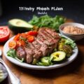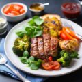 - Grilled steak with roasted vegetables and quinoa