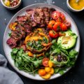 - Dinner: Grilled steak with roasted Brussels sprouts